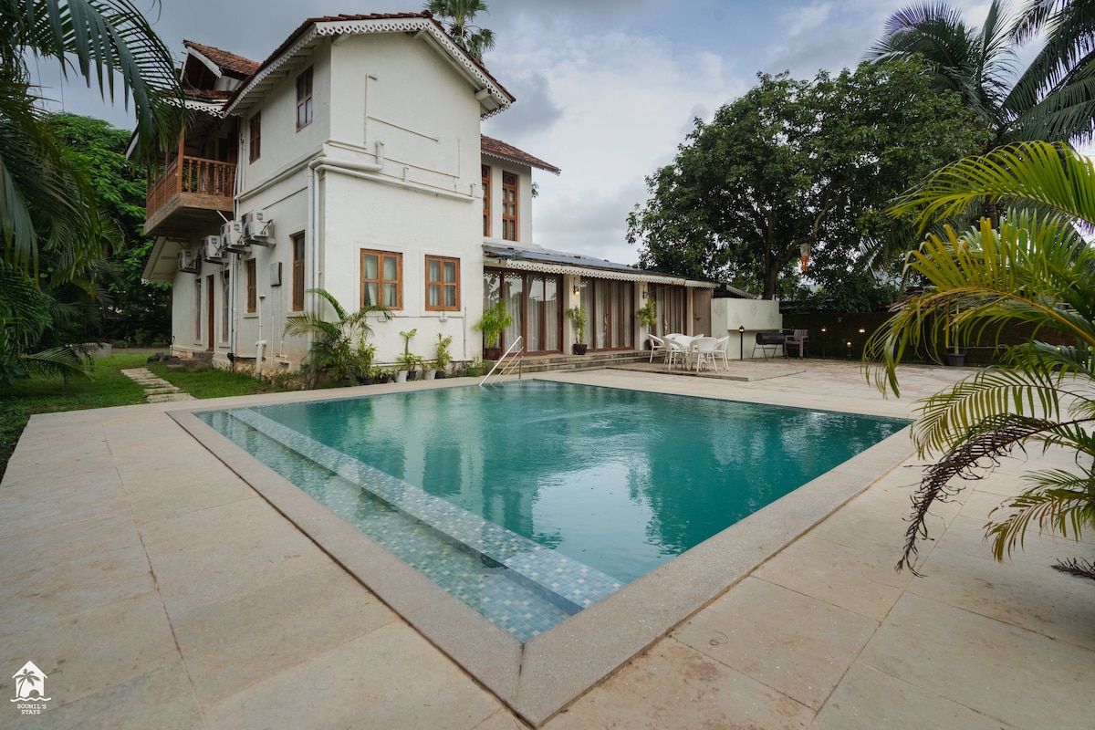 Ubicada en las serenas arenas de la playa de Nandgao, esta casa es donde la belleza de la naturaleza se encuentra con el encanto intemporal. Con hamacas que se balancean bajo las palmeras, un césped para el té, una terraza para puestas de sol y un cenador para las celebraciones, es tu escapada perfecta junto a la playa, con entretenimiento lleno de nostalgia y diversión infinita. Una hermosa casa de 4 dormitorios con comedor, una mesa de billar y una amplia sala de estar con lujosos asientos, un televisor y una colección seleccionada de libros que te invitan a relajarte.
