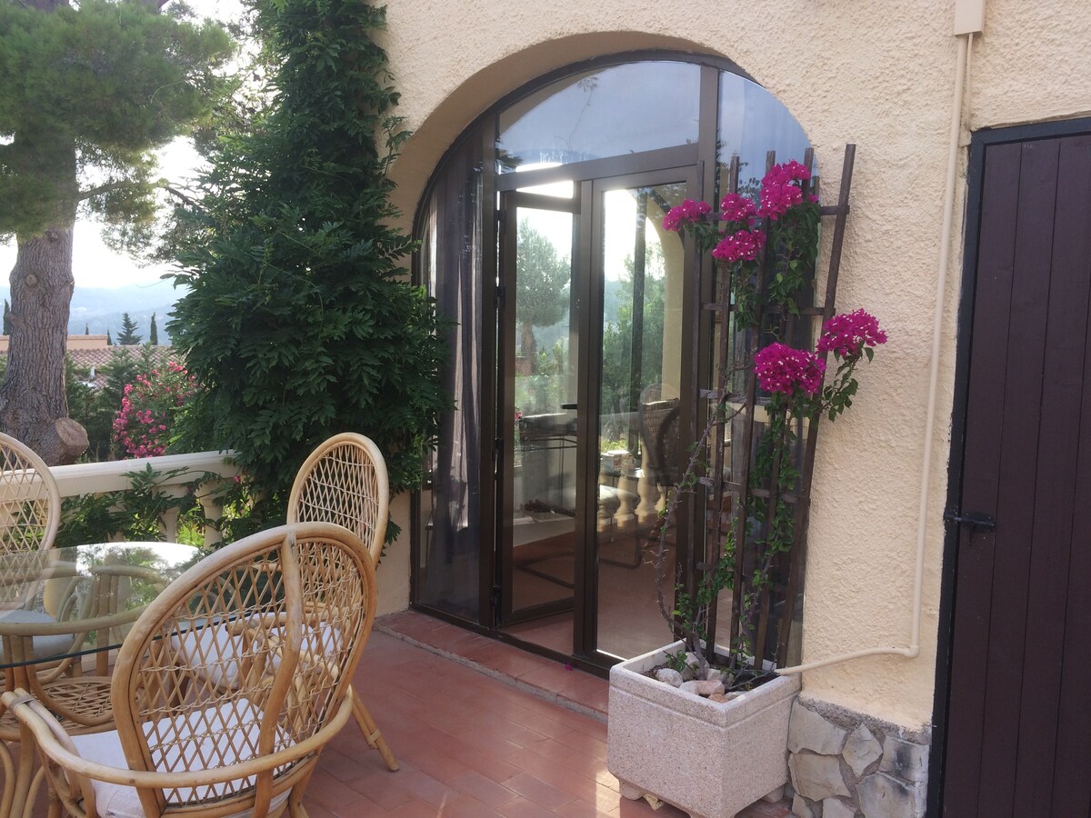 Acogedor apartamento con entrada independiente, la parte de la villa privada. Hay solo un dormitorio con la cama de matrimonio, en el salon se encuentra la sofa-cama. Piscina privada, barbacoa y sauna son solo para uso de los huéspedes del apartamento. Otra mitad de la villa estará vacía o ocupada por el propietario (Valentina). No hay zonas comunes. La playa más cercana es la cala Advocat y está a tan solo 7 minutos a pie. Tres restaurantes diferentes están a 5 -10 minutos a pie.
