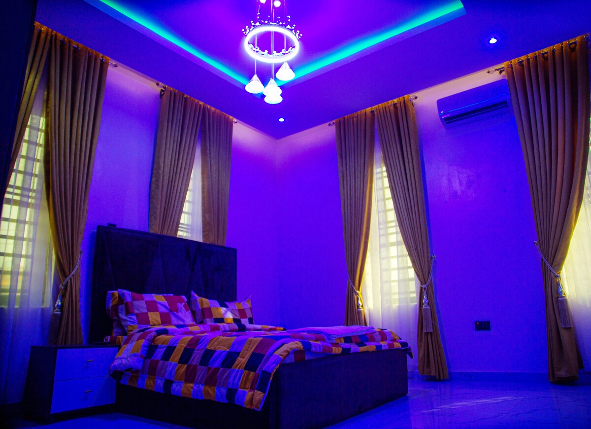 Somos un Bed & Breakfast familiar en una zona segura de lujo de Lekki en la fase 1 de Lekki. Hay 15 habitaciones en el lugar, pero la habitación que se muestra aquí es para la habitación 101 en la PLANTA BAJA. Es nuestra habitación de tamaño mediano con cama tamaño king. Ofrecemos electricidad las 24 horas, limpieza diaria, wifi gratuito y 1 desayuno de cortesía por habitación (huevos, tostadas, café/té). Hay desayuno mejorado y otras comidas disponibles. A cinco minutos de: - Puente Ikoyi Link - Landmark Beach a 15 minutos de: - Isla Victoria - Ikoyi