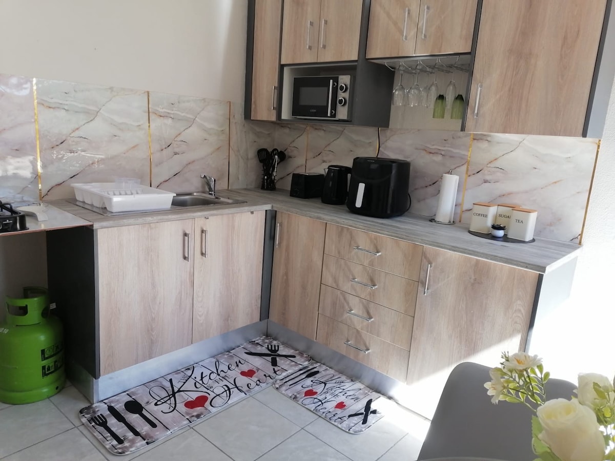 El estudio de lujo cuenta con una cama tamaño queen y un baño privado. Disfruta de wifi, aire acondicionado y una televisión inteligente con DStv y Netflix. Una cocina bien equipada con un quemador de gas, microondas y nevera añade comodidad a su estancia.