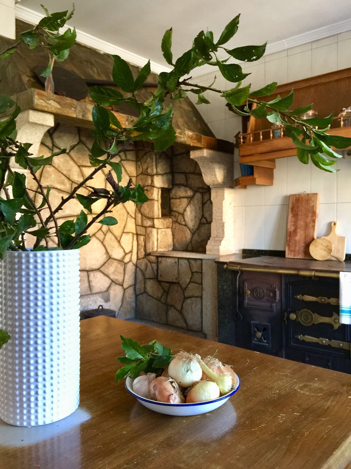 En esta casa vivían los "caseiros" - la familia que cuidaba la finca donde actualmente se cultiva nuestro vino ecológico. Restaurada en 2013, se conservó el espacio de la vieja cocina con su "lareira", el horno y el fregadero de piedra, ahora un espacio fresco para leer, jugar o dormir la siesta. Las dos plantas abiertas miran al valle del río Miño, que nos separa de Portugal. Arriba, para dormir o leer; abajo, donde antiguamente estaban los animales, para cocinar o salir al pequeño jardín.