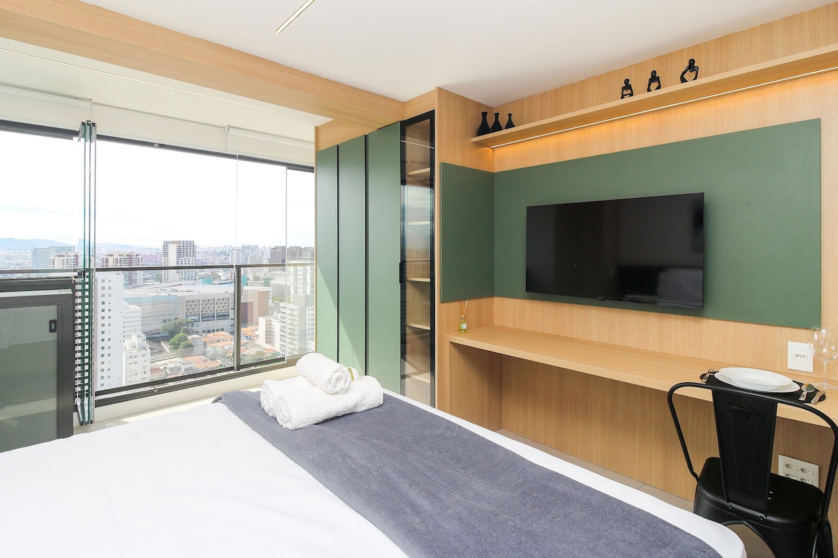 Brand new apartment, with a contemporary style, of a high standard and very well located, with a privileged view of Allianz Parque. Next to shopping malls, various businesses, means of transport, parks, tourist attractions and business buildings. The studio is complete, with a comfortable queen bed, Smart TV and Internet. Kitchen with all utensils, cooktop, refrigerator and microwave. With parking (rotary). Close to everything, cozy, perfect for experiencing fantastic moments.
