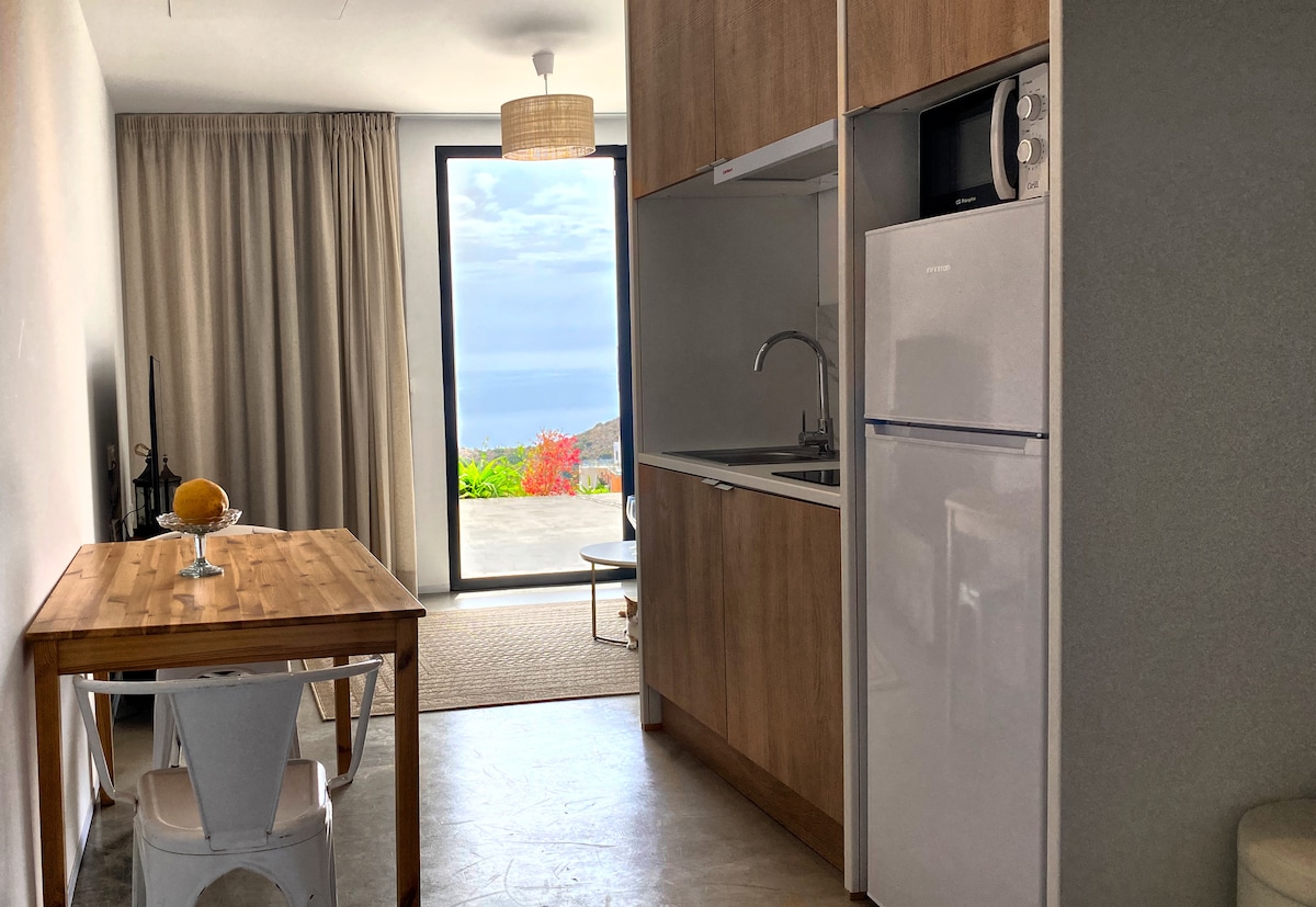 Estudio nuevo tipo loft en una zona muy tranquila de San José. Con PISCINA COMPARTIDA con otros 2 alojamientos (en total para 6/7 personas), aparcamiento en la misma puerta, WIFI y espacio al aire libre. El jardín ofrece estupendas vistas al mar y al Cerro del Fraile (un antiguo volcán originado bajo el mar) y espacio para comer, leer y relajarse junto a la piscina. La casa se encuentra a 5-10 minutos andando a la playa de San José, bares y tiendas. Ideal para parejas amantes de la naturaleza
