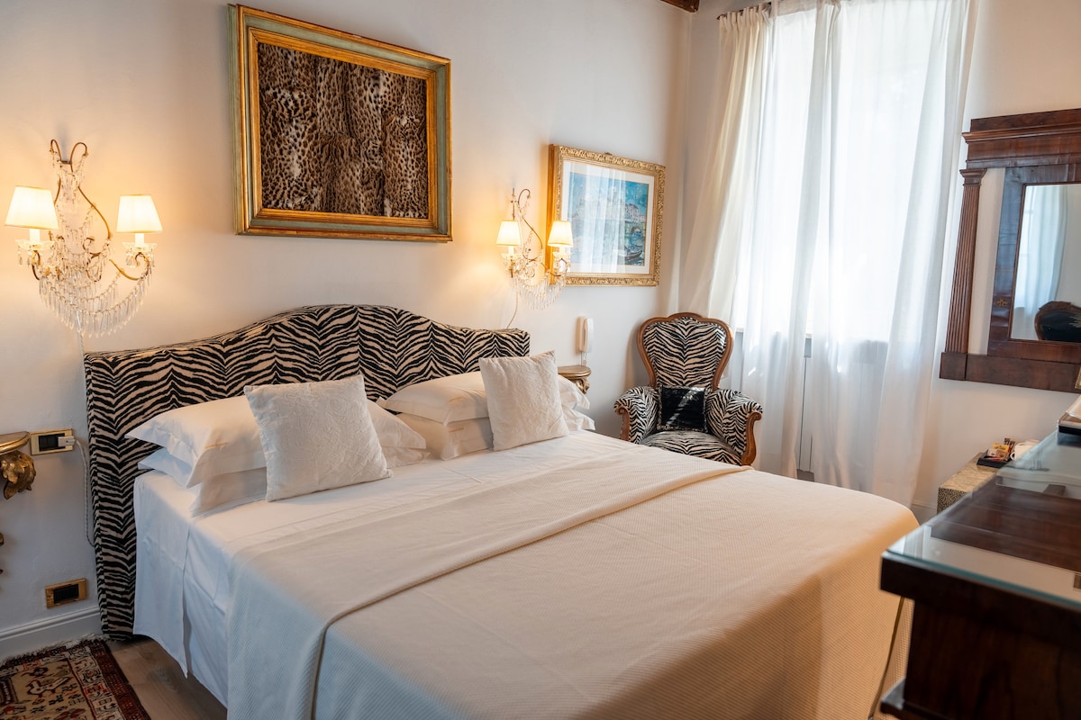 La camera matrimoniale Camelia è una spaziosa Junior Suite di 35 mq, con affaccio sul bosco e una vista panoramica sulla campagna toscana dove poter ammirare le colline fino a Firenze e uno splendido tramonto. Ha una zona living con un divano letto, una stanza armadio e un bagno privato con doccia, bidet e kit di cortesia, bollitore, frigobar, wifi. Può ospitare fino a 4 persone, l'ideale per le famiglie. Lenzuola, asciugamani, colazione a buffet e pulizie giornaliere sono incluse nel prezzo