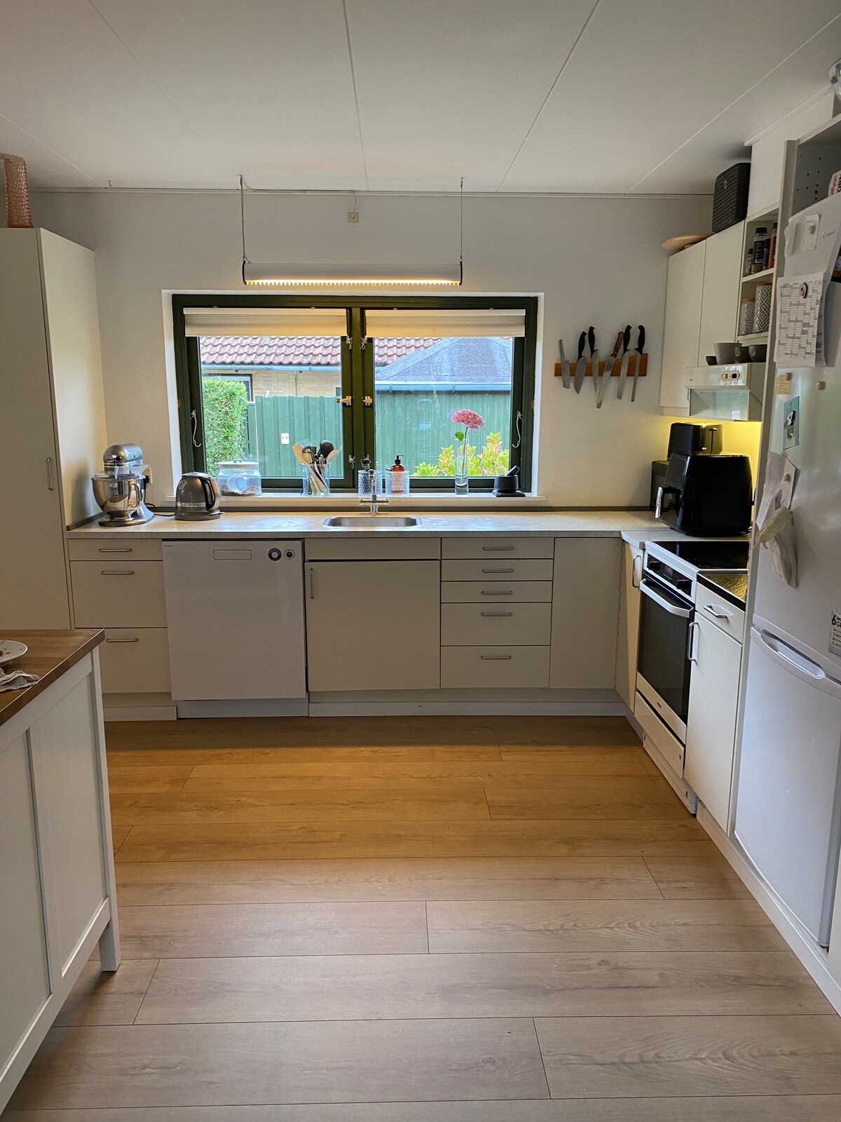 Vive de forma acogedora y tranquila en una antigua casa de madera del siglo XIX. La ubicación es rural, con animales y naturaleza justo al lado de la puerta, pero al mismo tiempo cerca de la ciudad, restaurantes, entretenimiento, compras y playa/baño. Aquí vivirás tranquilo y espacioso en unos 120 metros cuadrados con 2 dormitorios, cocina, amplio salón con sofá, TV y comedor y baño con inodoro, ducha, lavadora y secadora. Junto a la casa hay un patio frondoso y privado con parrilla justo al lado de los pastos con ovejas y caballos. Puedes aparcar el coche justo fuera.