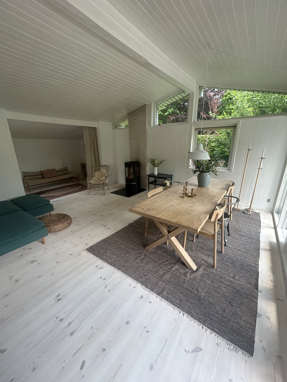 Casa de verano del arquitecto danés Søren Cock-Clausen. Suavemente restaurado. Amueblado con lo mejor del diseño danés de la época. El jardín es enorme, privado y con unas vistas espectaculares de los campos. Sol en todo momento del día. Columpios y una caja de arena para los niños. Dos anexos; una encantadora casa de madera con baño al aire libre, cocina pequeña y comedor, y una cabaña pequeña. Nuestra casa es perfecta para familias que aprecian el diseño, la naturaleza y la privacidad. El lugar tiene espacio para 10 personas, pero también es ideal para 4.