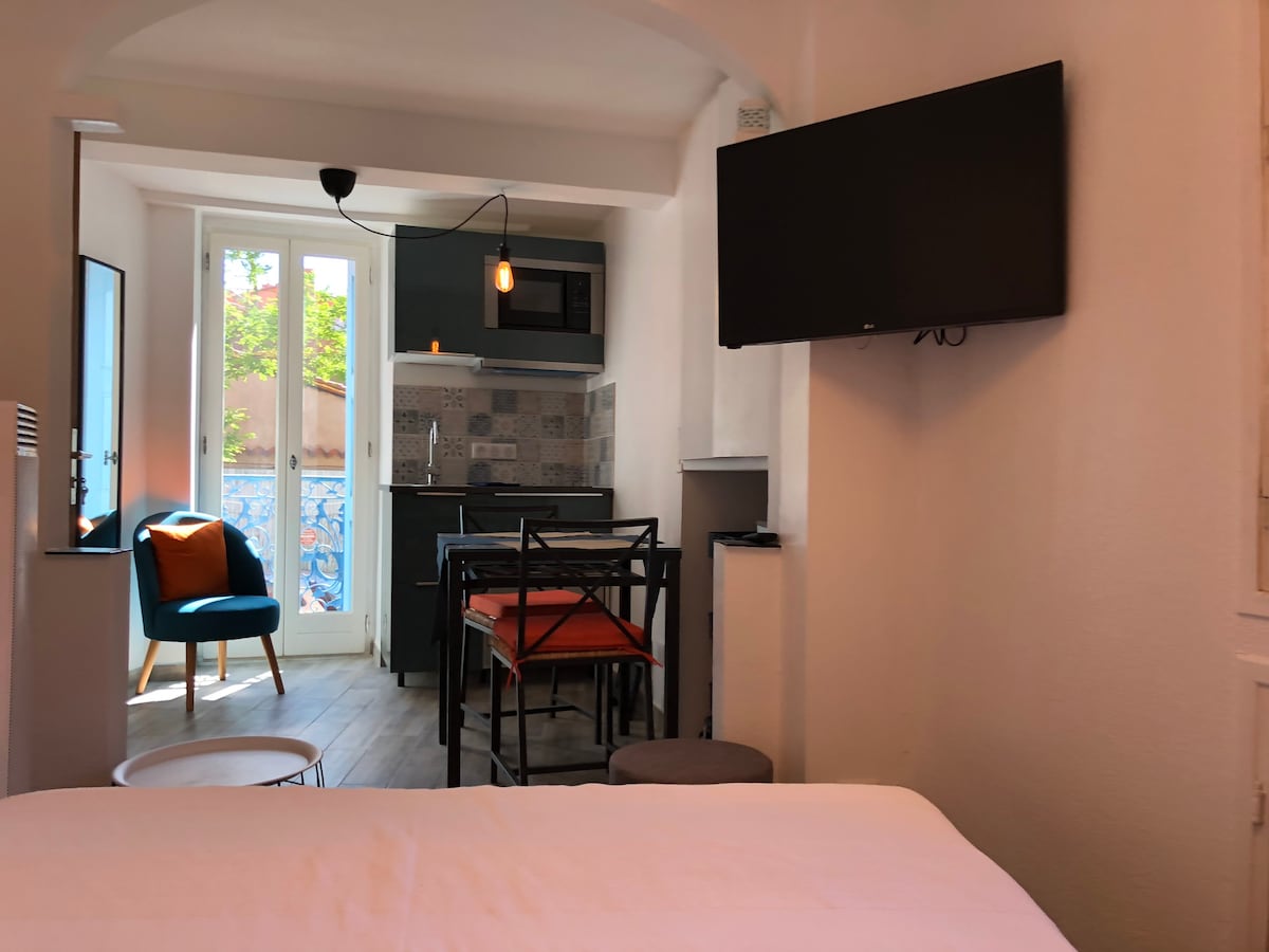 Découvrez notre suite de haut standing à Collioure, oasis de calme et de lumière (double exposition sur une place paisible, rare à Collioure). Rénové avec goût, ce 19 m² optimisé offre cuisine intégrée et douche à l’italienne sans vis-à-vis. Unique à Collioure pour son calme et sa clarté, il inclut sauna et spa pour une expérience cocooning inégalée (accès privé 18 h - 20 h). Linge et ménage professionnels inclus. À deux pas de la mer, profitez d’un séjour relaxant et luxueux. Fibre