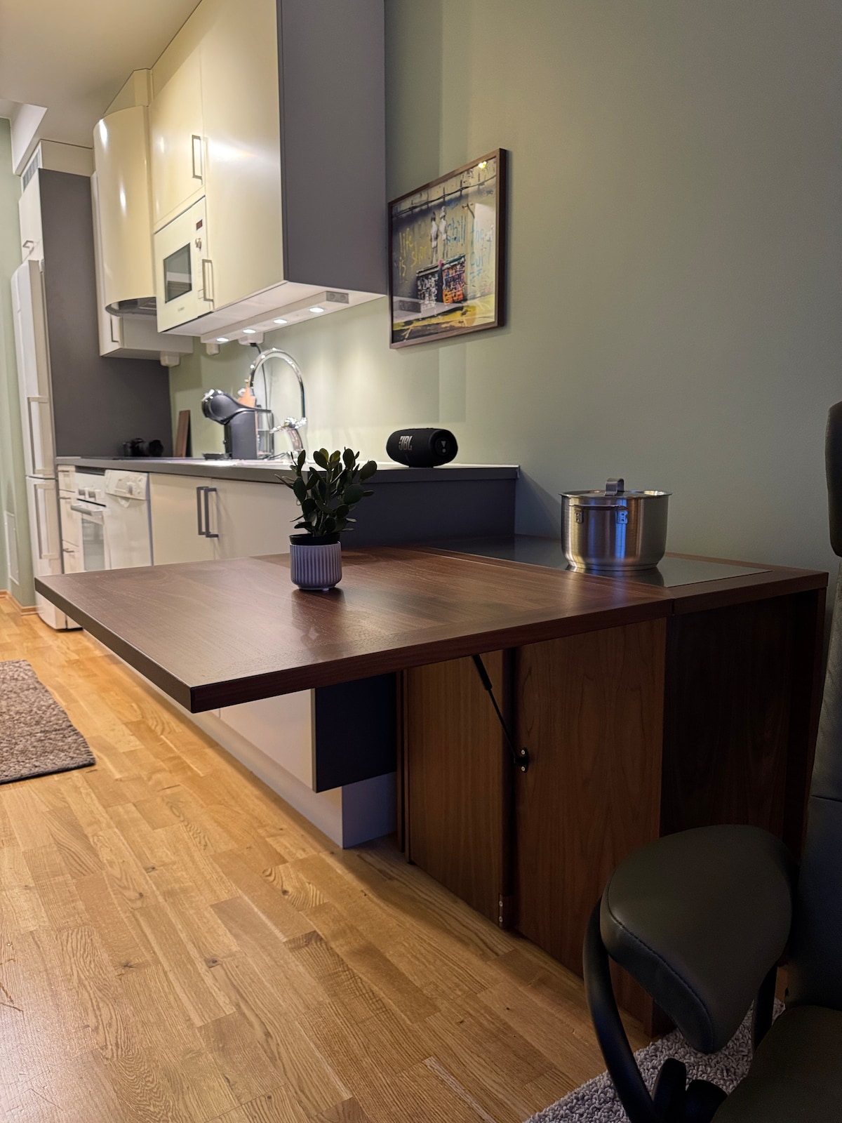 ¡Moderno y céntrico! Aquí vives justo en el centro. Distancia a pie a todos los servicios de la ciudad. Centro comercial, gimnasio, catedral de la aurora boreal, universidad, parque acuático y restaurantes. El departamento cuenta con una hermosa cama doble. Aquí duermen 2 personas, muy bien. Hay ventilación moderna y un clima interior muy bueno. Incluido en el precio, obtendrás una cocina bien equipada, ropa de cama, toallas, wifi, cafetera, lavadora/secadora y un elegante baño con esquina de ducha.