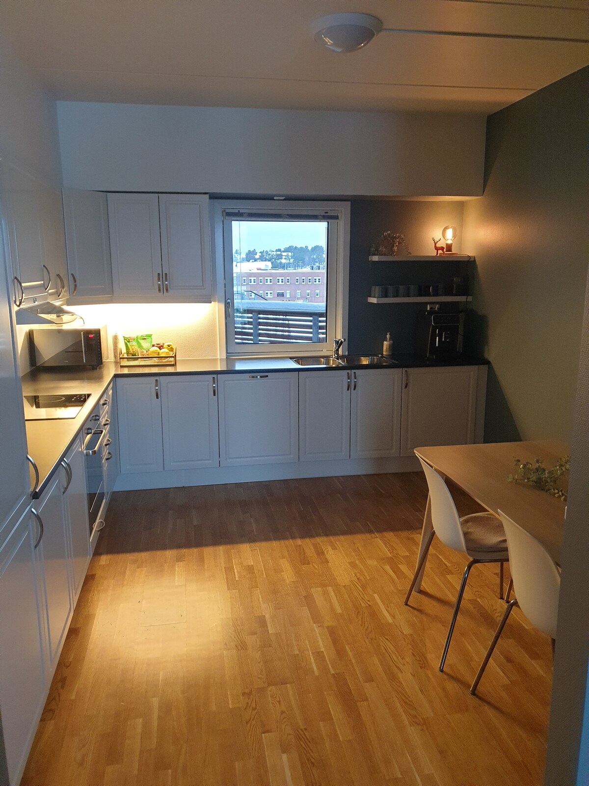 Trae a toda la familia a esta gran y espaciosa casa adosada en un barrio tranquilo. A solo 150 metros de la tienda de comestibles más cercana y la parada de autobús más cercana, el apartamento está ubicado a unos 3 km del centro de la ciudad de Alta. Aquí encontrarás todo lo que necesitas de servicios en el interior, y si es un buen día de verano, se puede disfrutar al aire libre, ya sea en el balcón o en la terraza frente a un acogedor bosque de pinos. En invierno, puedes ver la aurora boreal bailando en el cielo. El apartamento se mantiene en colores modernos y cómodos