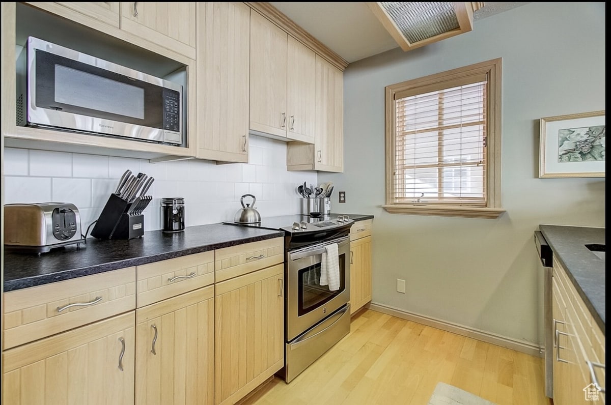 Acogedor apartamento de 1 dormitorio con acceso directo a las pistas de esquí (con zona de descanso) en el corazón de la estación de esquí de Solitude (ubicada en Big Cottonwood Canyon). Este apartamento de más de 800 pies cuadrados es uno de los apartamentos de 1 dormitorio más grandes de la propiedad. Es la escapada de montaña ideal, con acceso al Solitude Club, que incluye: jacuzzi, piscina climatizada, gimnasio, salas de juegos y películas. ¡A poca distancia a pie de cuatro establecimientos de comida/bebida y la mejor nieve del mundo! Para las estancias de verano, hemos añadido dos unidades de aire acondicionado.