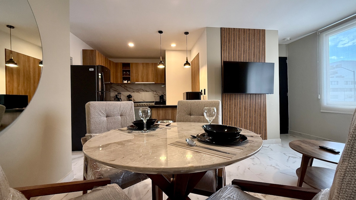 Vive una experiencia única en este acogedor y moderno departamento, perfecto tanto para viajes de trabajo como de descanso. Terraza privada con una vista espectacular de la ciudad. Estacionamiento techado y seguridad 24/7 para que estés siempre tranquilo. Ubicación privilegiada, a solo 5 minutos de Los Arcos y cerca de los principales puntos de interés, restaurantes y centros de negocios y entretenimiento. Haz de tu estancia algo especial, ya sea por unos días o una temporada. ¡Te esperamos!