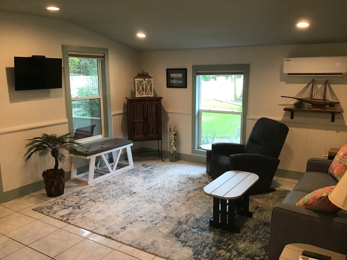 Alojamiento pintoresco en el extremo sur de la isla Amelia. Ideal para 1 o 2 adultos. 2 bicicletas de cortesía para disfrutar del sendero para bicicletas Amelia Island de 7 millas. Cocina completa, wifi y transmisión de TV inteligente. Excelente ubicación, directamente en el sendero para bicicletas. Restaurantes, playa y tiendas a pocos minutos. NO FUMAR NO SE PERMITEN MASCOTAS Tarifa de limpieza baja de 35 $ por estancia. Estancias cortas y largas. Solo UN estacionamiento designado. Las estadías de más de 14 días tienen una tarifa de limpieza adicional. LA PROPIEDAD HERMANA también está disponible en el mismo sitio, LADY PALM PLACE.