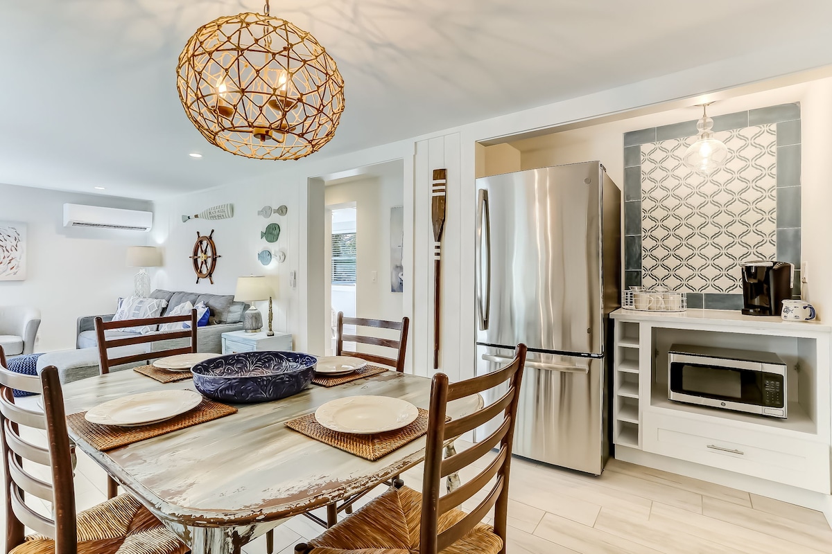 The Reef | 2 dormitorios/2 baños | Ubicado a pocos pasos de la playa Elegantemente actualizada, con acabados modernos y muebles seleccionados a mano, esta acogedora propiedad de 2 dormitorios y 2 baños se encuentra a solo unos pasos de la playa (pero no tiene vistas al mar). Disfruta de la cocina bien equipada y la cafetería en la unidad después de un día de tomar el sol o sentarte en el patio privado para tomar un cóctel por la noche. El arrecife cuenta con acabados de buen gusto, lujosas sábanas y las comodidades perfectas para sus vacaciones en la playa.
