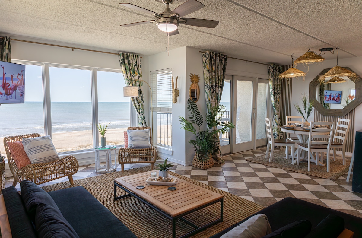 Unidad de esquina de 2 dormitorios, luminosa y espaciosa. Es limpio y bonito y ofrece todas las comodidades de un hogar. La sala de estar se abre a un balcón de 20 pies que ofrece vistas amplias de la playa de Fernandina y es el mejor lugar para ver la puesta de sol sobre el océano y los delfines jugando en las olas. El dormitorio principal está al lado del mar y tiene una cama tamaño king. La cocina está totalmente equipada, lo que permite comer en casa. Toallas, sillas y sombrillas de playa incluidas. ¡Perfecto para una escapada romántica, un fin de semana de chicas o unas vacaciones familiares!