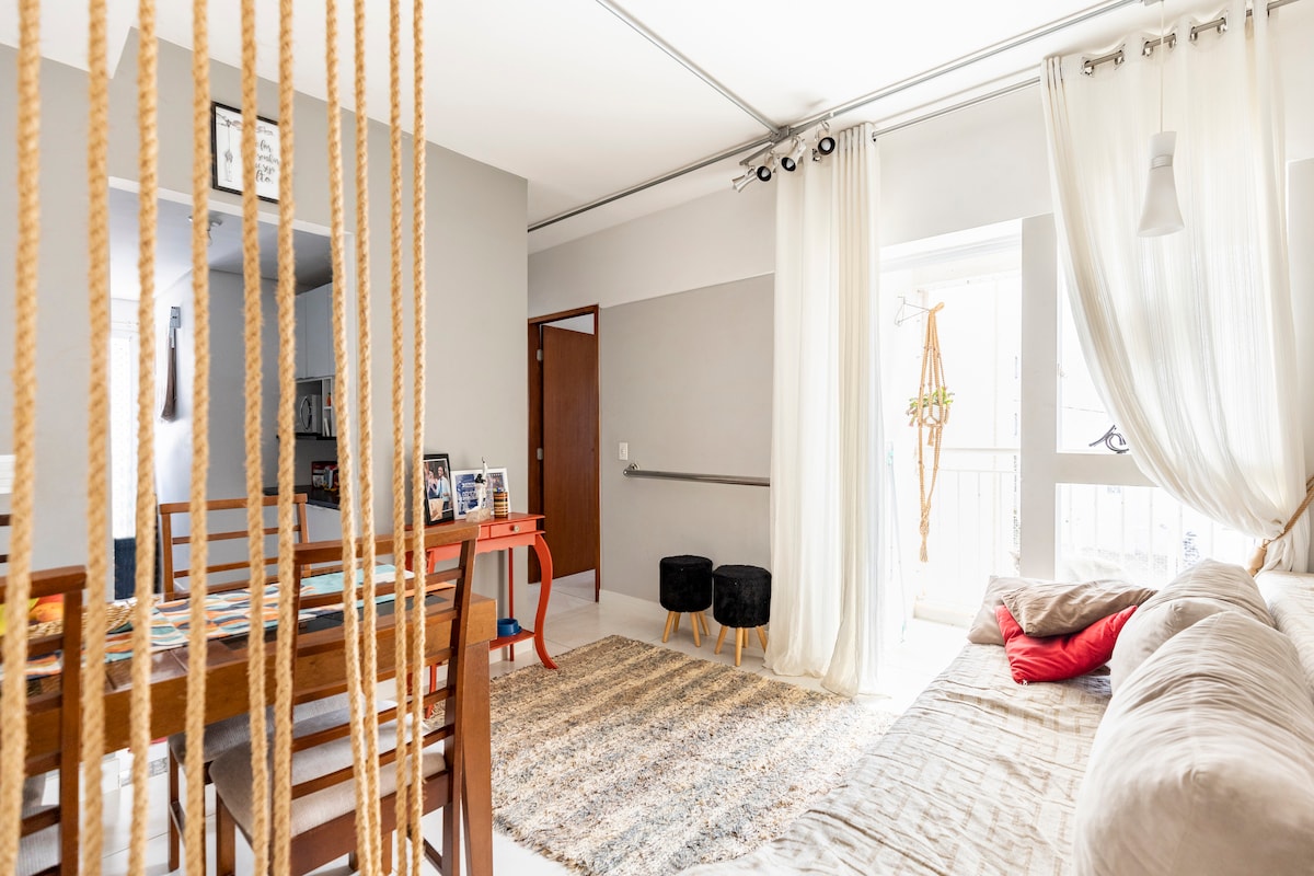 ¡Te damos la bienvenida! Disfruta de la oportunidad de alojarte en un apartamento espacioso y recientemente renovado, situado en la Av. Cillos de Americana. El espacio tiene todo lo necesario para tener una experiencia de tranquilidad y comodidad. Para servir a nuestros huéspedes, esta unidad tiene: Wifi particular - 350 megas. Cocina equipada: nevera, estufa, 4 bocas y todos los utensilios. Smart TV: accede a Netflix y a las aplicaciones directamente desde el televisor. A 1 minuto del centro, con bares de aperitivos, supermercados y tiendas.