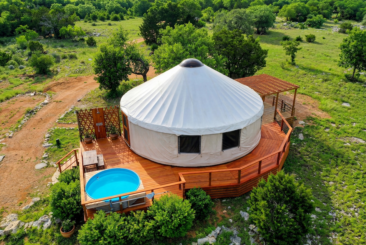 Yurta de lujo en Hill Country • Piscina, vistas, bar de café