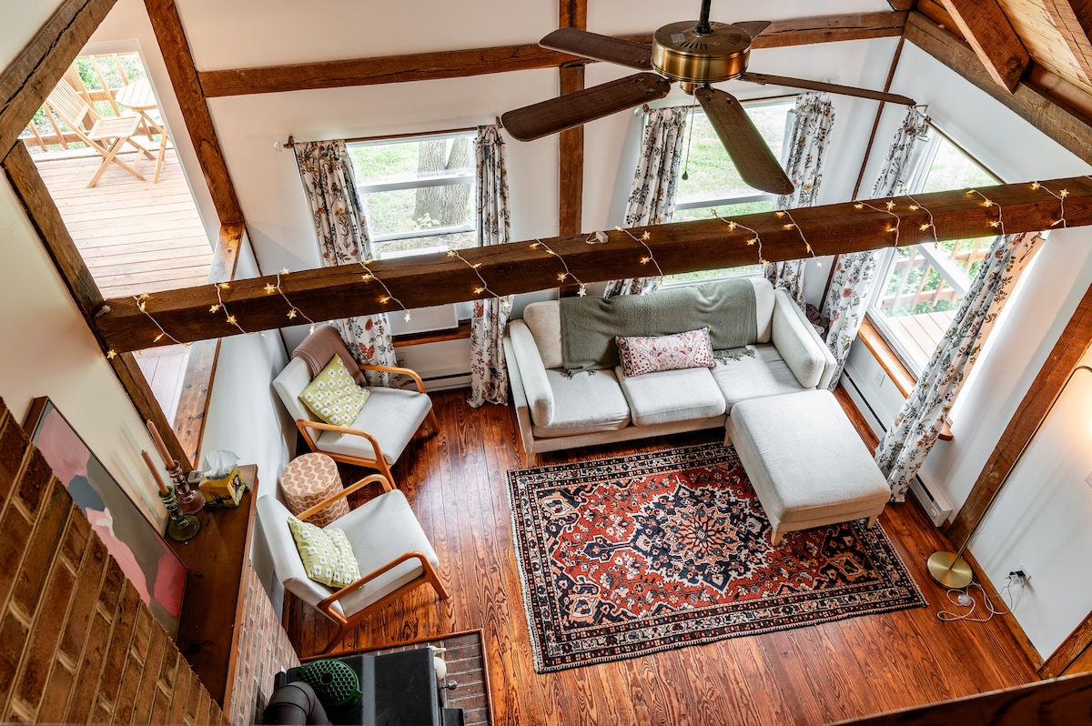 Our cabin was originally a grainery. We moved it to sit on a wooded knoll on our working sheep farm. Mornings can be spent relaxing on our front porch while watching lambs play. We offer a firepit and outdoor furniture to better enjoy the peaceful seclusion of our slice of the Blue Ridge Mountains. Guests are just 10 minutes to downtown Lexington, Virginia Military Institute, Washington & Lee University, Southern Virginia University & the Virginia Horse Center. The owner is a VMI alumnus.