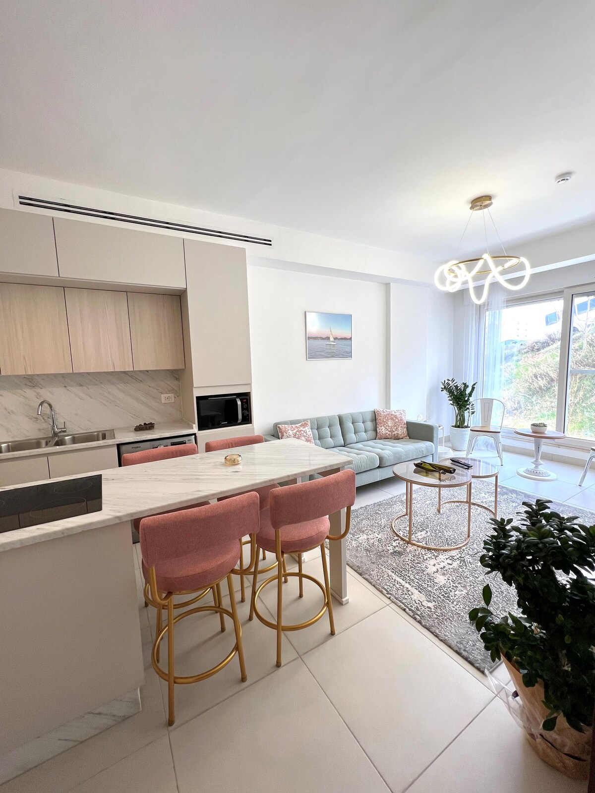 Bonito y moderno estudio totalmente amueblado con bonitas vistas a la terraza junto al supermercado, restaurante, hospital, tintorería, ciudad deportiva, farmacia y muchos servicios.