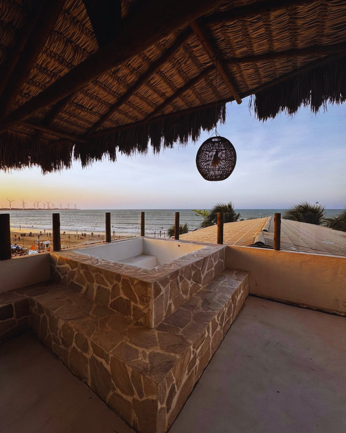 Una casa de campo con vistas al mar. Ideal para quienes buscan descanso y tranquilidad. Los alojamientos son dormitorios-cocina amueblados y con utensilios domésticos. Baño todo alicatado. Balcón orientado al mar y con brisa constante. Pescado fresco pescado en el momento. Sol y mar con una temperatura agradable y la brisa constante que refresca. Playa ideal para practicar deportes como el kitesurf en diferentes épocas del año. Se encuentra a 25 km de Icaraizinho de Amontada.