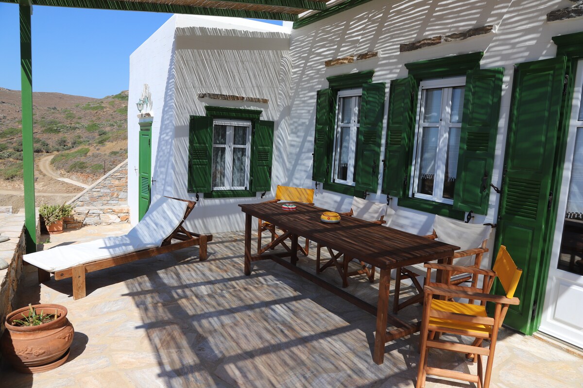 Una casa cómoda con vistas a la hermosa playa desierta de Tyrokomos. Un lugar tranquilo ideal para grupos que buscan un refugio sin privarse de una estancia cómoda. Se llega desde el puerto en diez o quince minutos.