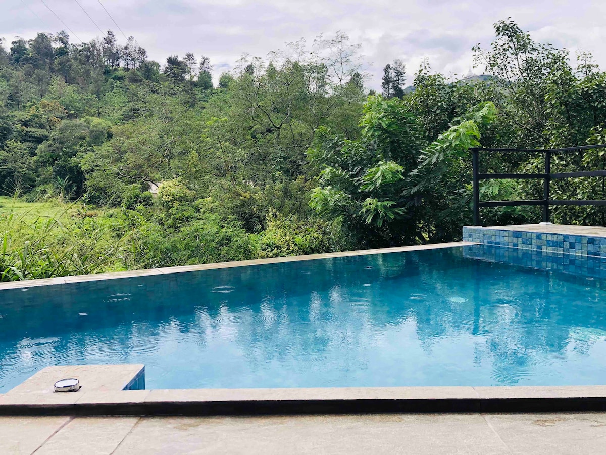 Experiencia First A Frame en Ella, Sri Lanka. Tea Cabins es tu escondite perfecto en una exuberante finca de té verde. Aislados y apartados, nuestros huéspedes nunca necesitan salir de la cabaña ni conocer a nadie. Disfruta de una experiencia única, escápate y concéntrate en los demás en la piscina privada con una chimenea al aire libre con vistas ininterrumpidas. Mira el tren pasar desde la cabaña y en 25 minutos a pie llegarás al famoso puente de los Nueve Arcos. ¡Este es tu escondite perfecto para escapar del bullicio de la ajetreada Ella!
