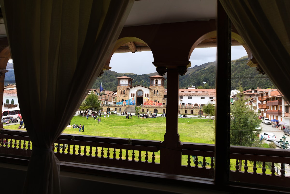 Chacas Plaza – Acogedor hospedaje con balcón.