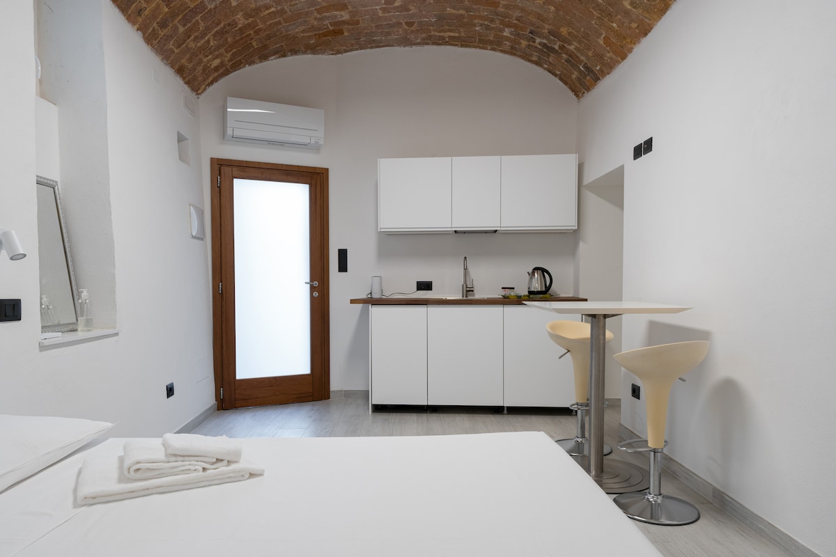El apartamento se encuentra en un edificio histórico, con bóvedas de ladrillo originales, justo fuera de las murallas del pueblo. Consta de una amplia sala de estar, con cocina equipada, sofá cama y mesa, y zona de dormitorio con cama de matrimonio. El baño ha sido recientemente renovado, al igual que la cocina. Situado en la paralela del curso principal con sus restaurantes, locales y tiendas. Las playas y los muelles están a 5 minutos a pie, así como el puerto turístico para embarcar hacia las islas Tremiti.