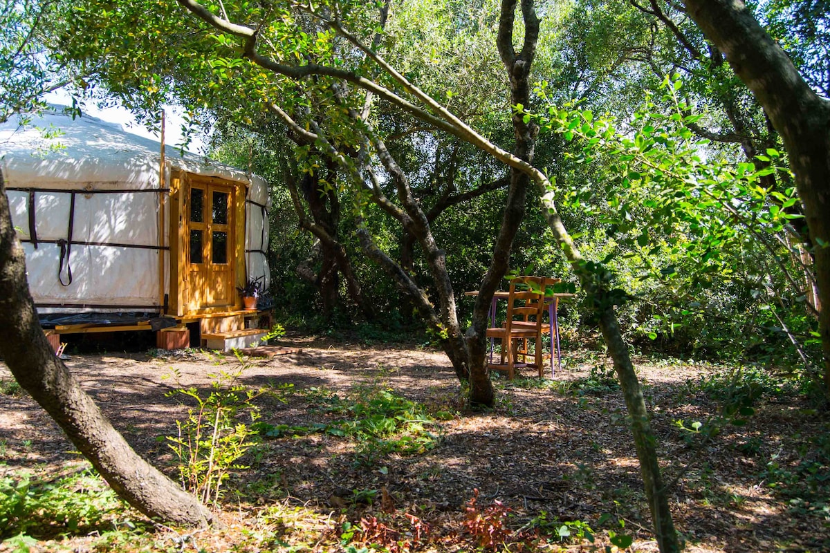 Paz, naturaleza y privacidad en abundancia. ¡Piscina abierta! Una yurta cómoda y encantadora hecha a medida con cocina privada y baño. Maravillosa brisa marina. A 12 minutos en coche de la playa. Un refugio en un campo de almendras. Aquí te sentirás lejos de todo, podrás recargar energías: caminar, charlar, meditar, cocinar, pintar, leer un libro... ¡Por favor, lee las normas de la casa! Esta casa es libre de alcohol y vegetariana. No se puede fumar, no hay wifi. Los últimos 5 minutos en auto empinado y curvado, ¡no para conductores nerviosos!