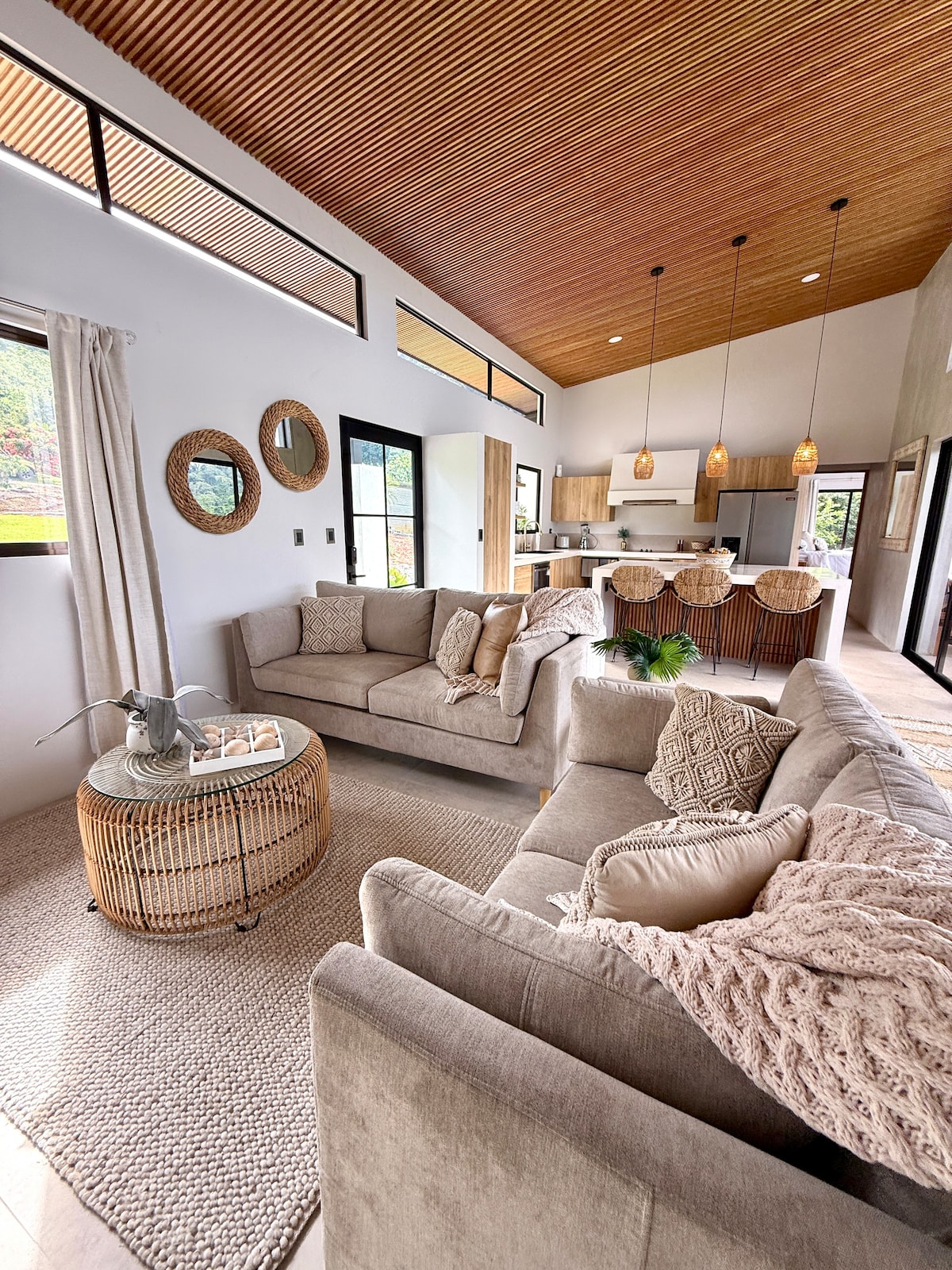 Aves Monteverde: lujo natural entre nubes y bosque. Complejo con casa de 3 niveles (con escaleras y diseño abierto, puede oírse sonido entre niveles) y cabaña 100% privada. Jacuzzi con vista, 2 chimeneas, cocinas equipadas y gran terraza. Verás colibríes y tucanes. Privacidad total y experiencia inolvidable (hasta 6 personas). 🚗 A 15 min de Santa Elena (restaurantes y supermercados). Acceso con tramos de camino rural; se recomienda SUV o carro alto. 🌿 Clima fresco, sin A/C. Llevar abrigo.