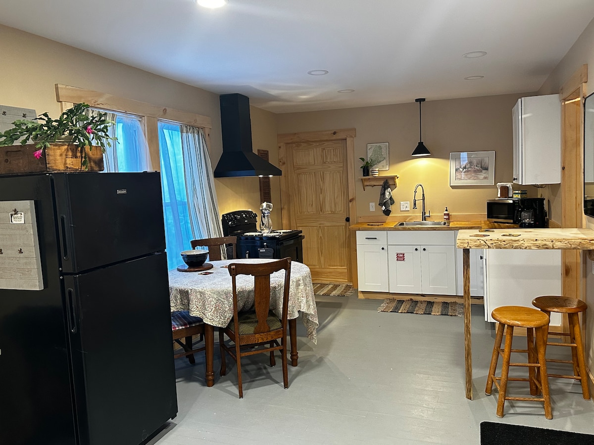 Granja victoriana de 1880. Alójate en una «época pasada». 2 dormitorios privados. Suelos de madera originales. Puertas de bolsillo originales. Capacidad para 6 personas. Cuenta con sala de estar, cocina, comedor, 1 baño con bañera y zona de estudio. Ciudad encantadora, población de más de 4000 habitantes. Casa para no fumadores. Entrada privada sin llave. La puerta azul. Wifi gratuito, cable, Roku. Tiene cafetera Keurig con café gratis, platos, ollas, sartenes, cubiertos, placa de cocción Nu-Wave, tostadora, microondas, nevera y parque infantil. Camas tamaño queen. Baño y ducha privados.