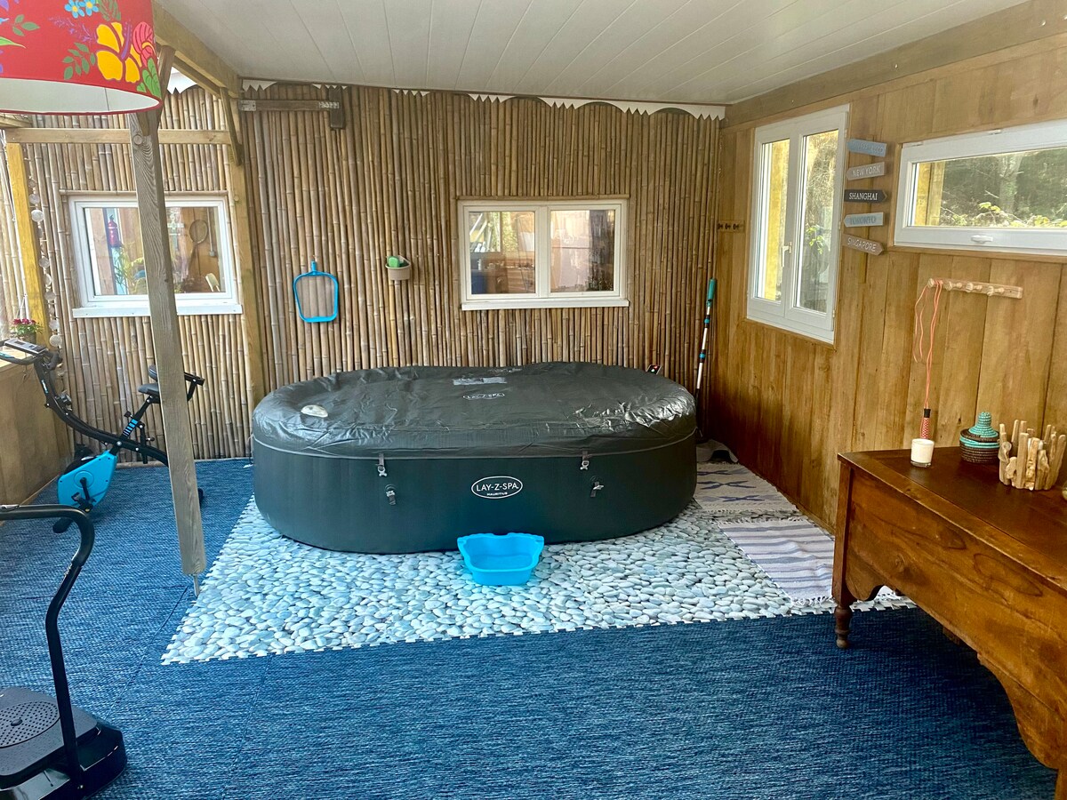 Preciosa cabaña de madera construida con materiales tropicales y exóticos en el corazón de Andernos-les-Bains, enclavada en un jardín privado de 400 m2 escondido y rodeado de un entorno forestal. La cabaña está situada cerca de la bahía de Arcachon (a 5 minutos en coche), a 30 minutos en coche de Cap Ferret, a 3 minutos de Burdeos Mérignac y a solo 8 minutos en bicicleta del centro de la ciudad. Cercano a un sinfín de rutas en bicicleta.