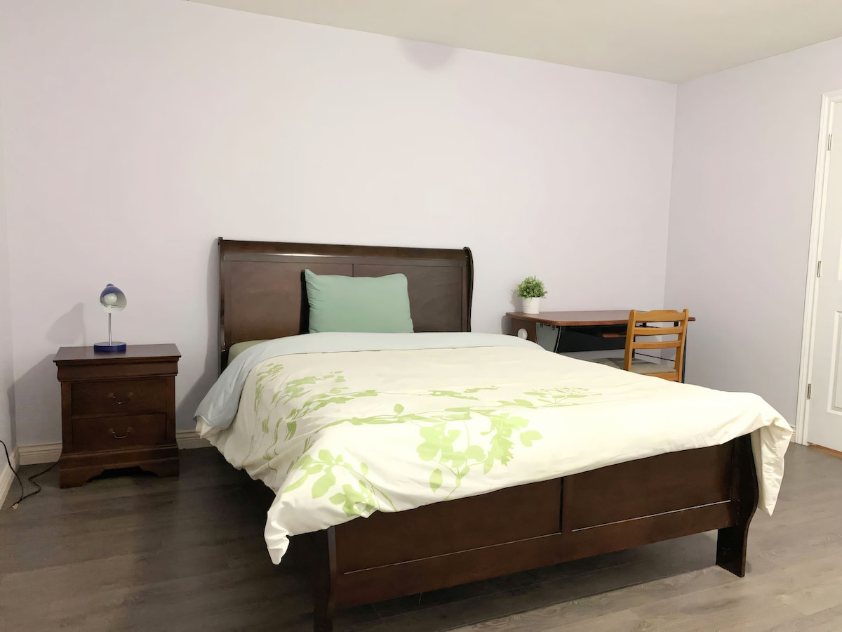 Amplio dormitorio con cama tamaño queen | Baño compartido YVR, aparcamiento