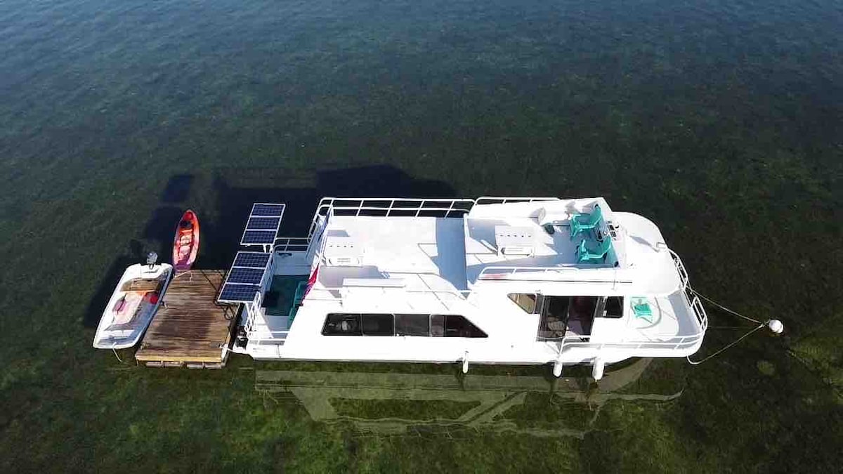 ¿Buscas una experiencia vacacional única e inolvidable en Cayo Hueso? ¡No busques más, esta encantadora casa flotante anunciada en Airbnb! Escápate de lo ordinario y disfruta de la tranquilidad de vivir sobre el agua. Nuestra casa flotante ofrece todas las comodidades de una casa acogedora, con la ventaja adicional de impresionantes vistas y una ubicación privilegiada. En el alquiler se incluye el uso de un esquife para ir y volver de tierra y un capitán local de séptima generación para ayudar en el registro y dar un recorrido por la casa flotante.