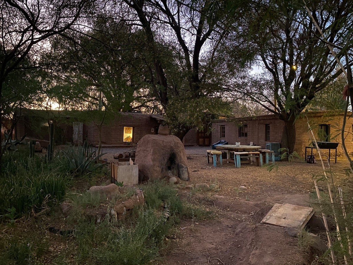 A solo 3 km del centro de San Pedro, en el Ayllu de Checkar, se encuentra Casa Ohana, casa familiar de 140 m2, que cuenta con 3 habitaciones, dos baños, comedor, sala de estar, terraza, quincho y hermosas áreas verdes y vistas privilegiadas a la cordillera, a los atardeceres y al magnífico cielo nocturno del Desierto de Atacama. Con capacidad para 7 a 8 personas, en camas individuales y dobles, ideales para familias y grupos. Recomendamos llegar en vehículo.