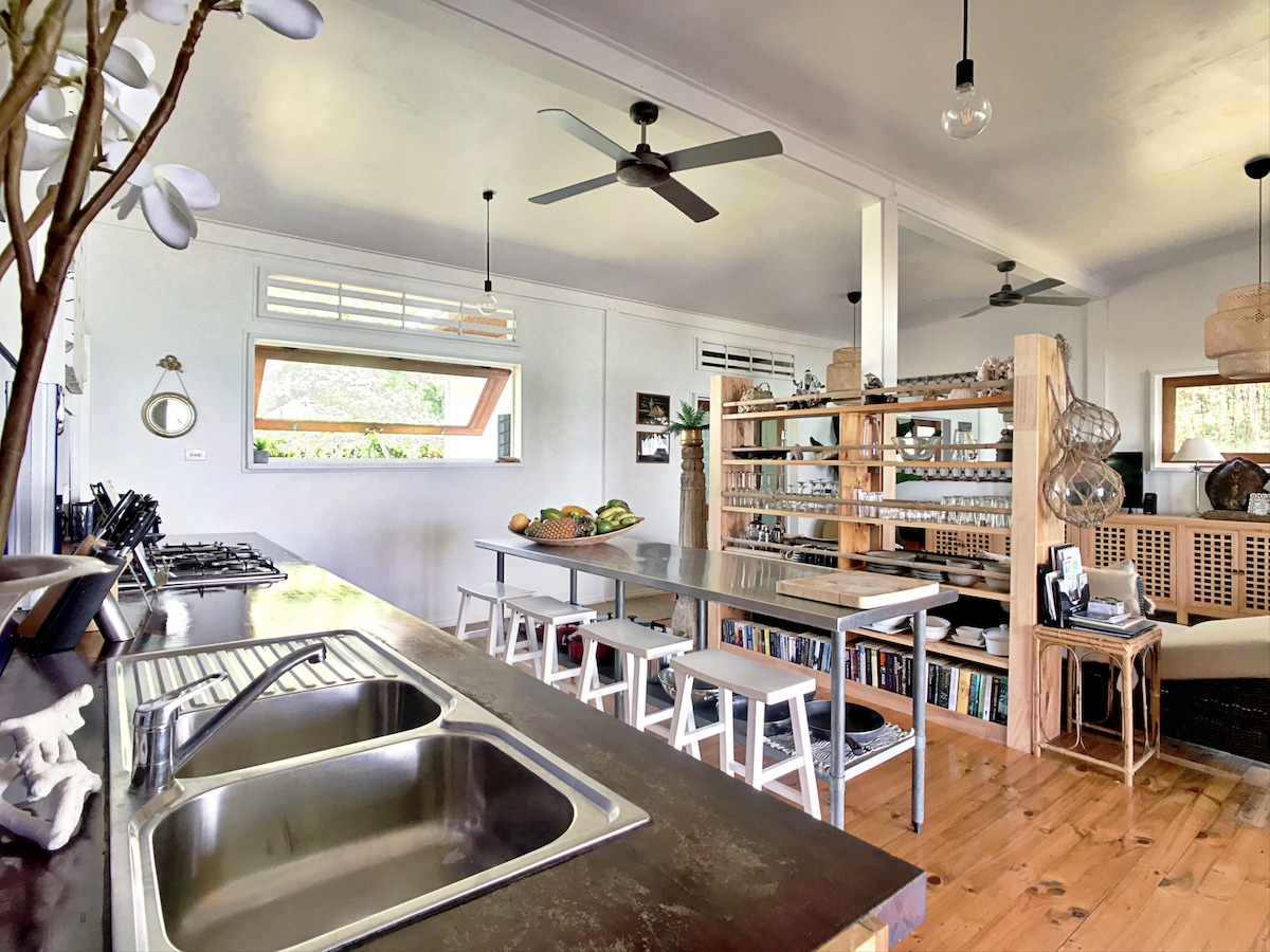 3 dormitorios tamaño king, 3 baños, 235 metros cuadrados, Waterfront Beach House está a 6 metros de las brillantes aguas azules del Pacífico Sur. Despiértate con las vistas panorámicas del agua y duerme con los sonidos de las suaves olas. Nos encantan las vacaciones de verano, por lo que buscamos un lugar donde sea verano durante todo el año, con una brisa fresca en tierra, maravillosamente privada, a un vuelo corto desde Australia con aguas cristalinas. Un lugar para relajarse por su cuenta, con amigos o bucear en el arrecife de coral. ¡Lo encontramos! Te encantará.