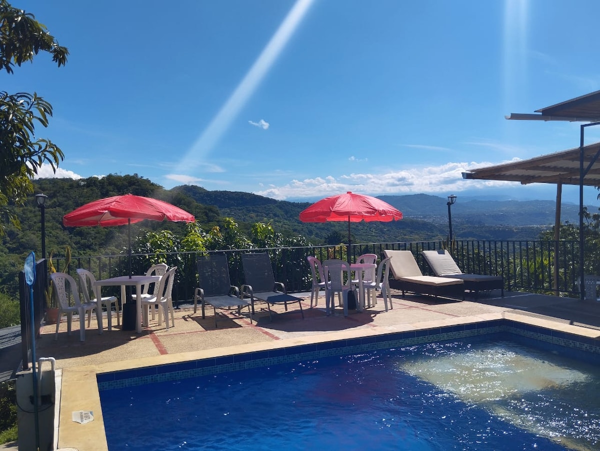 Ideal para descansar conectado a la naturaleza. Ubicado en un exclusivo Club Privado con seguridad 24/7, Golf, Tenis, circuito de trail y bicicleta . La vista es imponente y el clima excelente. Piscina privada con asoleadoras. Casa full equipada: 2 areas sociales con techos de Guadua; 3 habitaciones con baño privado y agua caliente incluidas sabanas y toallas; cocina abierta y BBQ , area TV con DIRECT TV, PING PONG, WIFI. Terrazas 180 grados y jardín privado con frutales. Somos pet friendly.