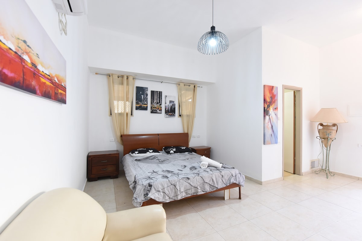 Disfruta de la mejor escapada familiar en esta increíble villa de lujo, a solo 600 metros (5 minutos a pie) del vibrante paseo marítimo, las playas, los restaurantes y las tiendas de Eilat. Esta villa, diseñada para el confort y el entretenimiento, ofrece todo lo necesario para unas vacaciones perfectas. Ten en cuenta que el apartamento en sí no tiene una habitación segura privada, pero hay un refugio público justo enfrente de la entrada a la propiedad (a solo 5 metros de distancia). El refugio está abierto y disponible para su uso en caso de alarma o emergencia.