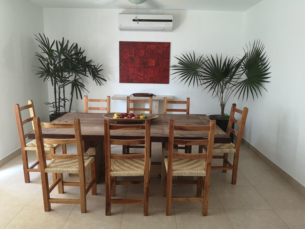 Amplio y cómodo departamento en planta baja con entrada independiente, ideal para dos parejas y cuatro amigos o hijos. 3 RECÁMARAS, 6 - 8 HUÉSPEDES. Rec. A - Cama King size. (1 KS) Rec. B - Cama King size. (1 KS) Rec. C - Dos literas con 4 camas individuales (bunk room) Cocina completamente equipada, 2 baños, terraza y estacionamiento 2 autos medianos. Aire acondicionado general. Todo en excelentes condiciones de funcionamiento, calidad y limpieza. Para mí lo más importante eres tú.