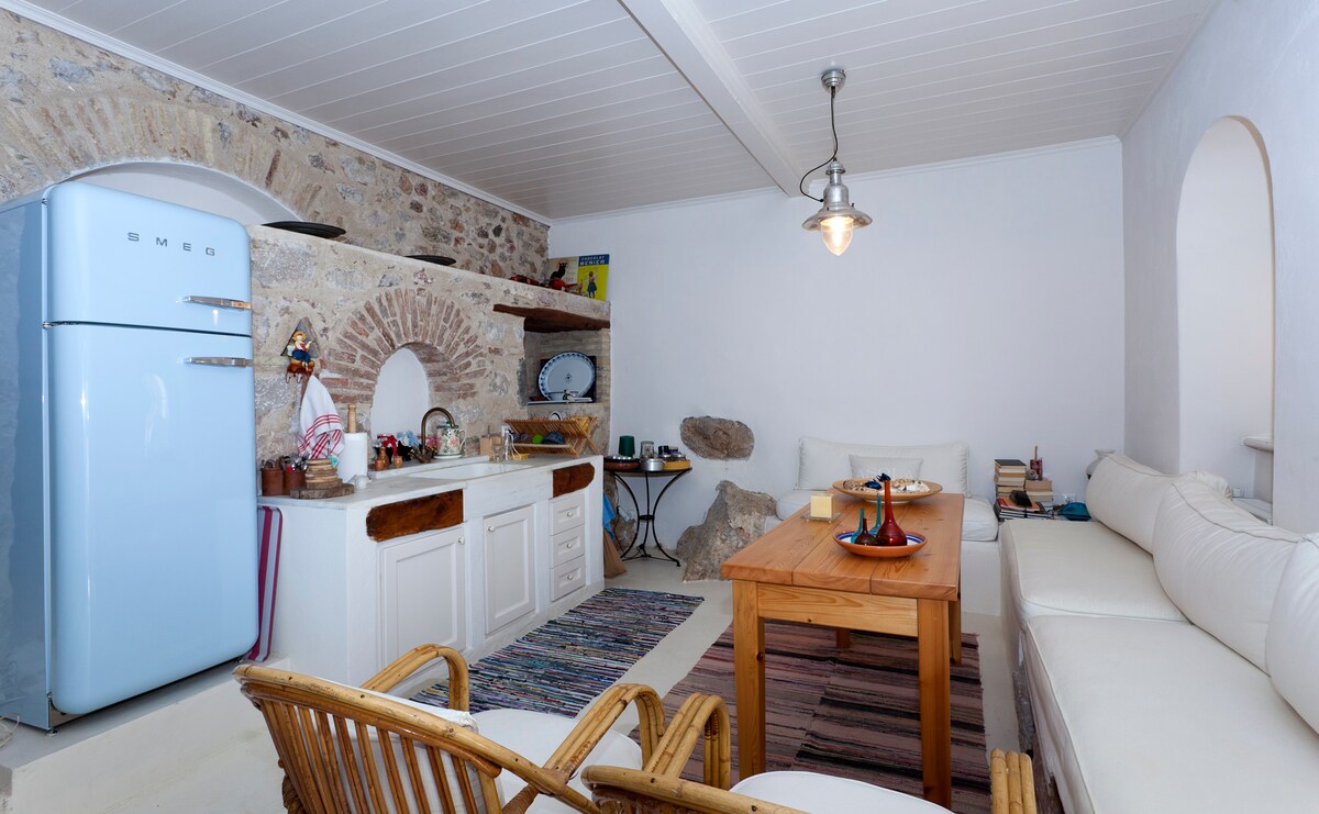 La antigua tienda de comestibles del abuelo Thodoris, situada en una tranquila calle pavimentada con guijarros junto al puerto, se ha convertido en un pequeño espacio acogedor, para que pueda disfrutar de momentos únicos de relax y descanso en la encantadora ciudad marítima de Galaxidi.La casa está situada en la segunda calle del puerto principal, donde se pueden encontrar restaurantes, cafeterías y bares. Se puede ir a todas partes a pie, ya que está en el puerto principal. Se puede bañar en el mar a poca distancia.