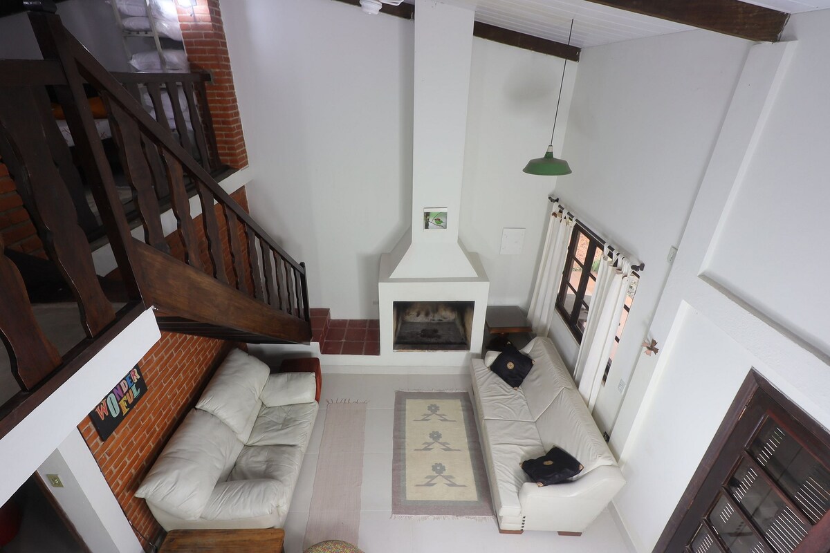 Relájese en este espacio tranquilo, rodeado de naturaleza, en Ibiúna, en un condominio cerrado. En una zona de más de 2.000 m² encontrarás una casa de campo confortable, de muy buen gusto y acogedora. Con bosque, jardín, balcón y vista al horizonte. Una suite; vestidor; cocina totalmente equipada; sala con doble altura; lavabo; altillo con zona de trabajo, sofá cama y baño. A 12 km del centro de Ibiuna, a 20 km de la ruta del vino, a 70 km de São Paulo. Ideal para un fin de semana inolvidable.