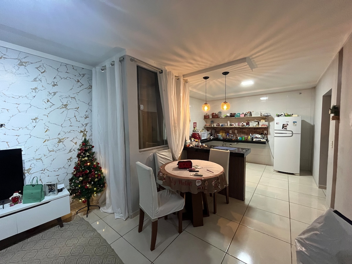 ¡Disfruta de días inolvidables con tu familia en Mar Azul! Casa acogedora y bien equipada, la escapada perfecta para aquellos que buscan descanso, comodidad y diversión junto al mar. Con piscina privada, zona gourmet con barbacoa y aire acondicionado en la habitación, ofrece todo lo necesario para relajarse y disfrutar de lo mejor de la costa de Aracruz. Está a solo 2 manzanas de la playa, en una calle tranquila y segura, ideal para familias y grupos de amigos. «¡La comodidad del hogar con un ambiente playero!