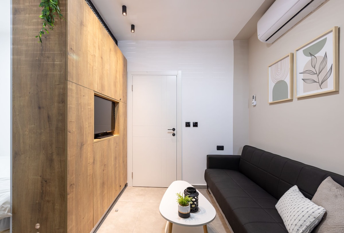 Disfruta de un apartamento estudio lujoso y meticulosamente diseñado con detalles cuidadosamente considerados. Si bien es un apartamento estudio, el espacio está bien definido e incluye múltiples áreas para relajarse. Ya sea en la cama cómoda y limpia con sábanas suaves o en el acogedor sillón en la sala de estar mientras ves un buen programa en Netflix. Además, hay un encantador balcón con vistas a la tranquila calle. Para los entusiastas de la cocina, la cocina totalmente equipada cumplirá todos los sueños culinarios.