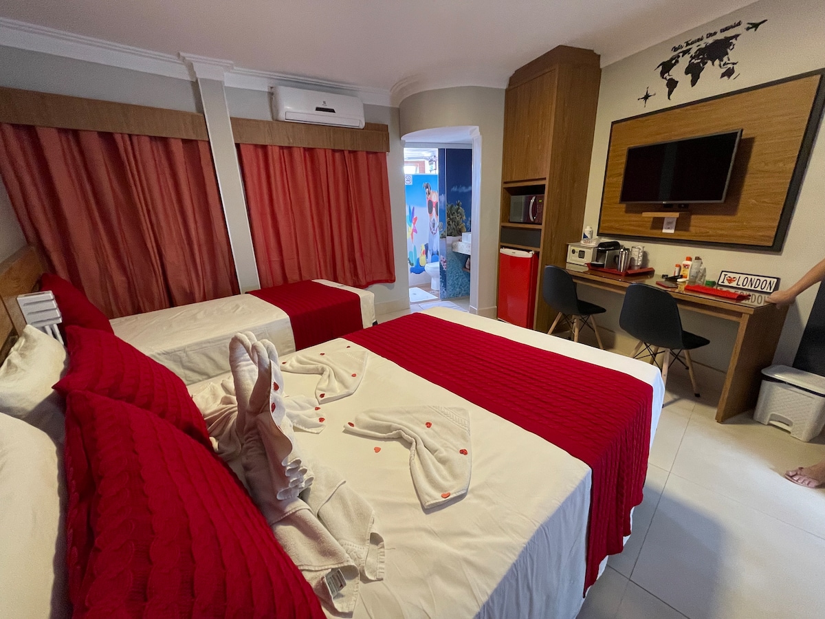 Apartamento en el complejo turístico Golden Dolphin Grand Hotel. - Súper bien ubicado, en la zona central de la ciudad. - La estancia le permite frecuentar la zona común de los hoteles Golden Dolphin Express, Grand Hotel y Supreme (piscinas 24 horas). - Con capacidad para 4 adultos y 1 niño de hasta 5 años. Introduce el número correcto en la reserva. OBS: La tarifa de limpieza no incluye la ropa de cama y baño. Si quieres el juego de cama completo del hotel, podemos reservarlo por una tarifa adicional de 30,00 R$ por estancia.