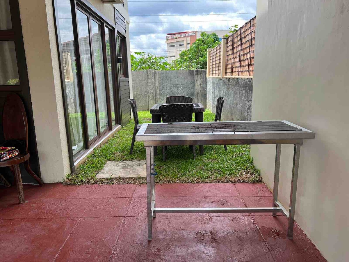 Moderna y fresca casa ubicada en Shrine Hills Matina. A poca distancia de la iglesia y del famoso restaurante Jack 's Ridge, donde puedes tener una gran vista de la ciudad por la noche mientras cenas. W/2BR tanto con aire acondicionado como con su propio inodoro y baño, sala de estar y comedor también están con aire acondicionado y 1BR fuera de la casa, se encuentra la habitación de la criada también con inodoro y baño. La zona de garaje cubierta es el lugar ideal para organizar una pequeña fiesta, con cocina exterior donde puedes cocinar y preparar todos tus alimentos.