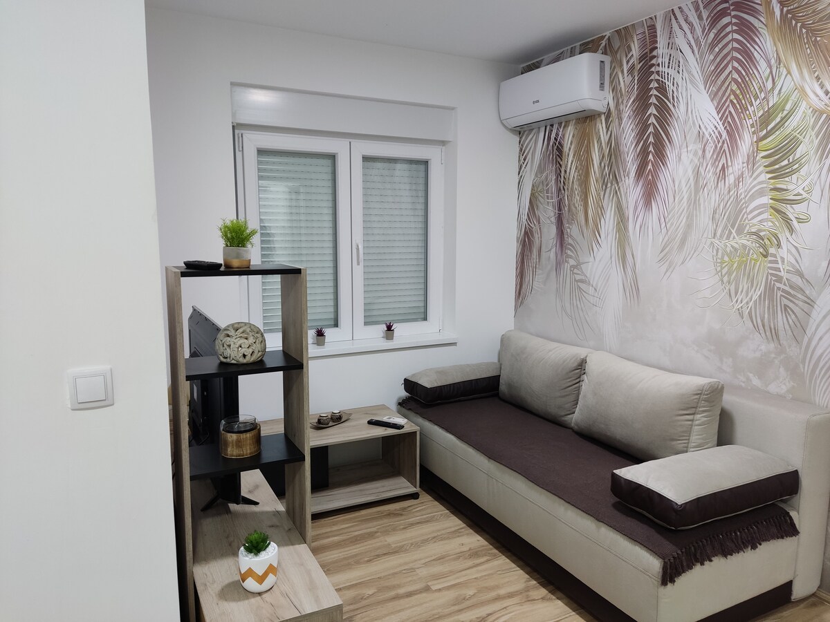 El apartamento está totalmente equipado para una estancia cómoda de dos adultos. El apartamento tiene una cama supletoria y, previa solicitud, proporcionamos una cuna para bebés. En su viaje, puede llevar una mascota (perro o gato) de hasta 10 kg sin cargo adicional. El apartamento está situado en el centro de Arandjelovac, a 5 minutos a pie de todos los servicios de la ciudad.