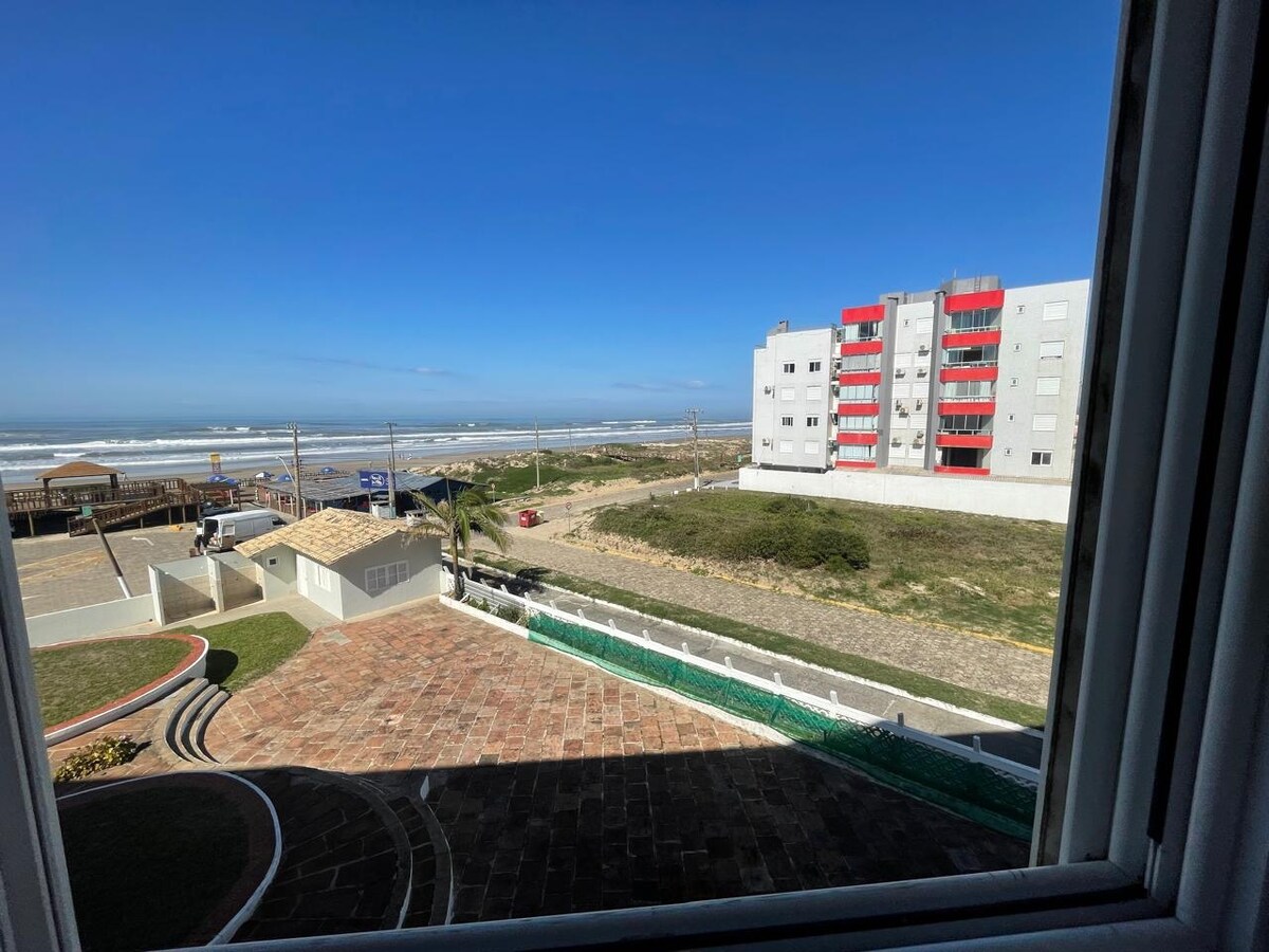 Ótimo apartamento situado na Beira Mar da Praia Morro dos Conventos - Araranguá/SC. Comporta até 6 pessoas. Possui dois quartos (um com cama queen e outro com cama de casal), além de sofá cama na sala e um colchão de solteiro. Um banheiro! Cozinha toda equipada, inclusive com máquina de lavar e centrifugar! TV SMART 50 polegadas na Sala! Vista para o mar e vista para as dunas e paredão do Morro! Disponibilizamos cadeiras de praia e guarda-sol para sua maior comodidade!