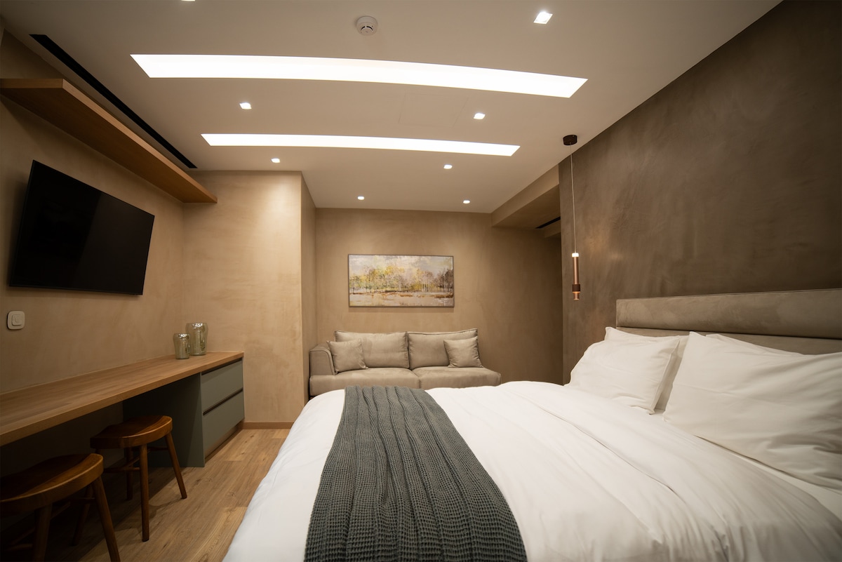 Descubre la suite IKIAN | Luxury Serenity en Dimitsana, un alojamiento sofisticado situado en el centro del pueblo, cerca de cafés, tabernas y lugares de interés cultural. La suite cuenta con interiores refinados y todas las comodidades: una cama tamaño queen, sofá cama, cocina totalmente equipada con microondas, máquina de café espresso y hervidor de agua, wifi de alta velocidad y registro de entrada autónomo sin problemas. Diseñado para parejas, viajeros de negocios y trabajadores remotos que valoran la comodidad y la elegancia.