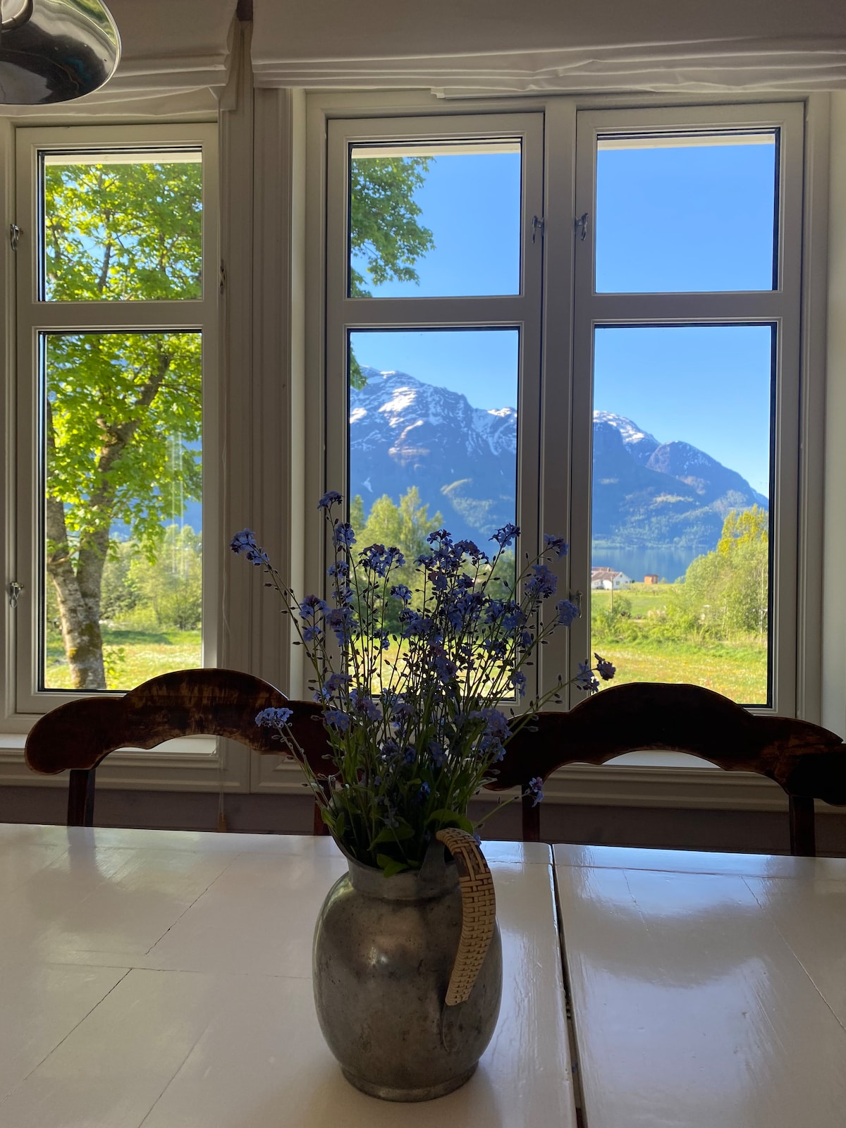 Encantadora y antigua casa con un toque romántico campesino ubicado en el corazón de la idílica Lustrafjorden. La casa tiene todo lo que necesitas para disfrutar de una estancia acogedora y tranquila junto al fiordo, incluida la larga distancia del vecino más cercano, acceso a una bonita zona de baño en la planta baja de la casa, balcón y balcón de invierno de vidrio asociado, jardín grande y floral, varios grupos de asientos al aire libre e interiores, hornos de leña en múltiples espacios de vida y una cocina bien equipada con electrodomésticos.