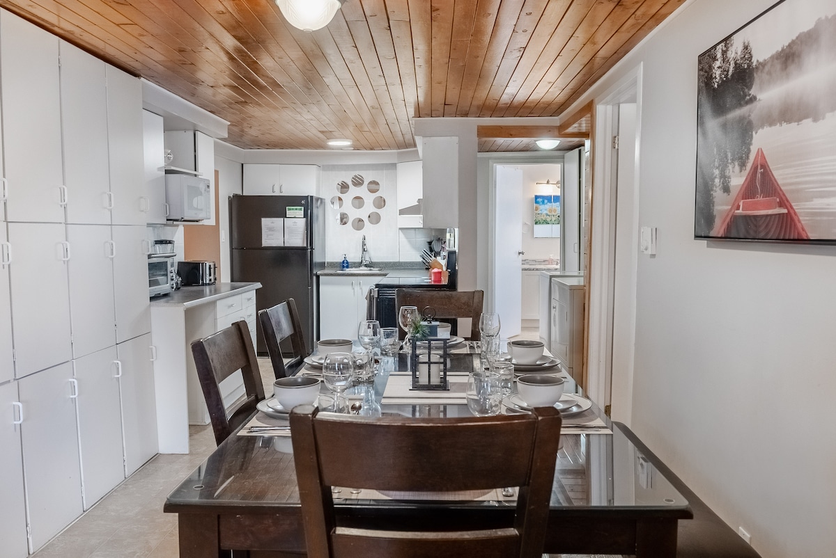 Relájate con toda la familia en esta acogedora propiedad frente al lago. Esta cabaña ubicada en la naturaleza canadiense, que cuenta con su propia playa de arena, kayaks, jacuzzi y múltiples opciones para comer al aire libre y fogatas, es una visita obligada. Tanto si vienes durante el verano para disfrutar de un baño en las aguas cristalinas del lago Bob como si buscas una acogedora escapada invernal, no busques más. Cerca del sistema de senderos K&P, senderismo, motos de nieve y deportes acuáticos, ¡la aventura y la relajación te esperan!