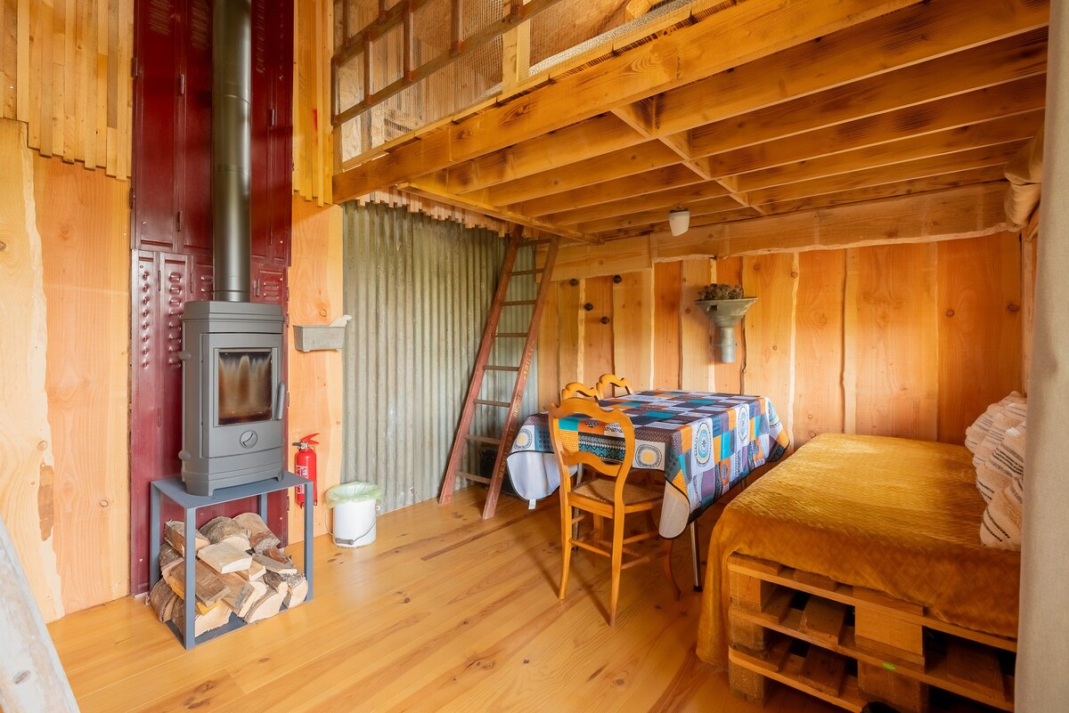 Ontsnap aan de drukte en ontdek een afgelegen privéparadijs midden in de natuur. ’s Avonds geniet je van een knisperend houtvuur, terwijl je onder een heldere sterrenhemel volledig tot rust komt. Overdag word je wakker met vogelgezang en uitzicht op het open landschap. 📍 Slechts 5 minuten van de Belgische grens en gemakkelijk bereikbaar vanuit Brussel en Wallonië, perfect voor een weekendje weg of een langere natuurpauze. De plek is in de Franse Ardennen, op het platteland.